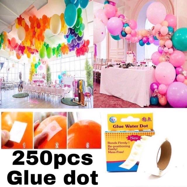 - Water Glue Dots are use in a variety ways from pasting balloon or party decorations onto any surfaces with strong adhesion and easy removal, to use it as a double sided tape functions.